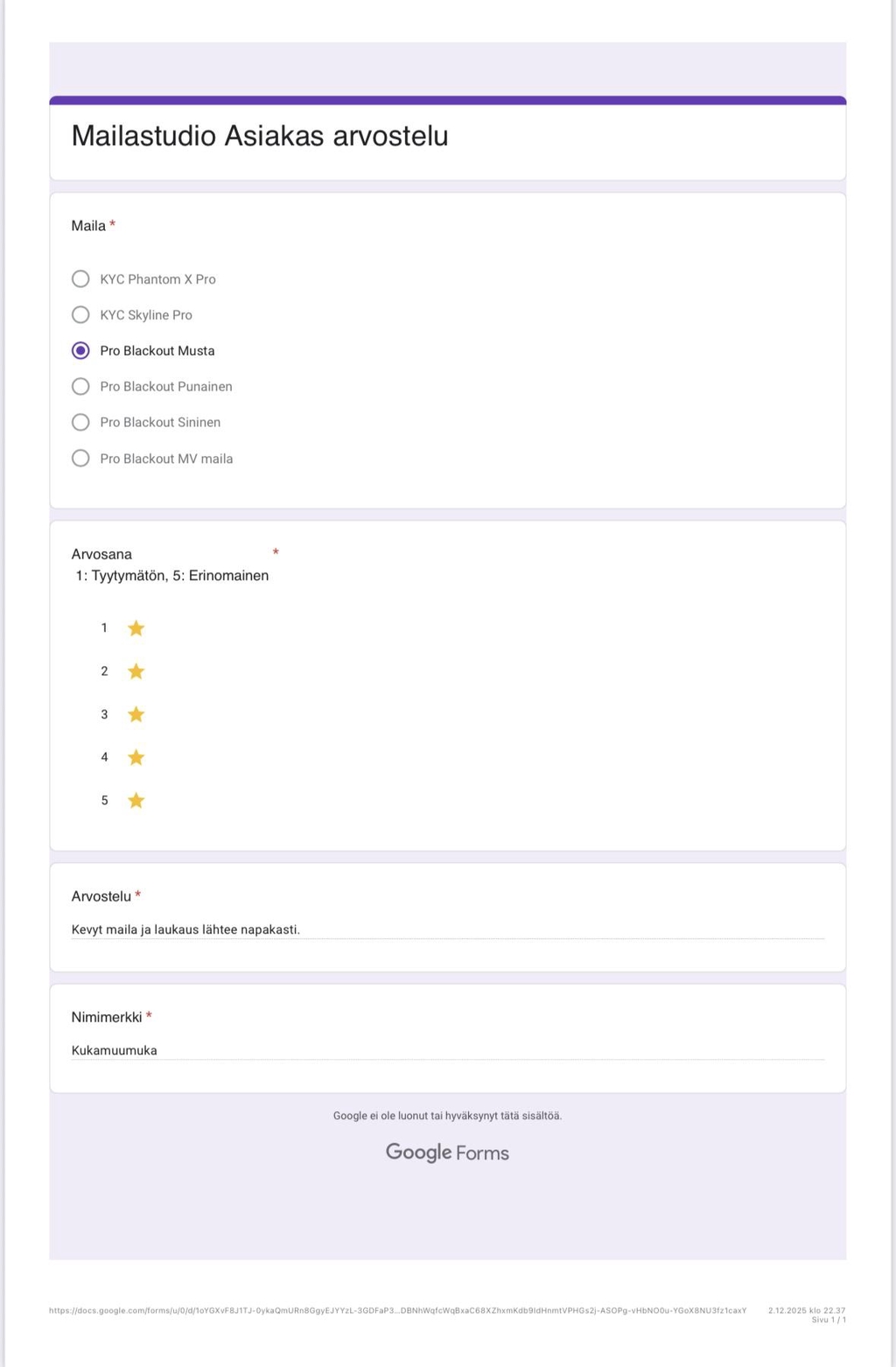 Ilmainen toimitus yli 100€ tilauksiin 15.12 asti koodilla JOULU🎁🎅🏻